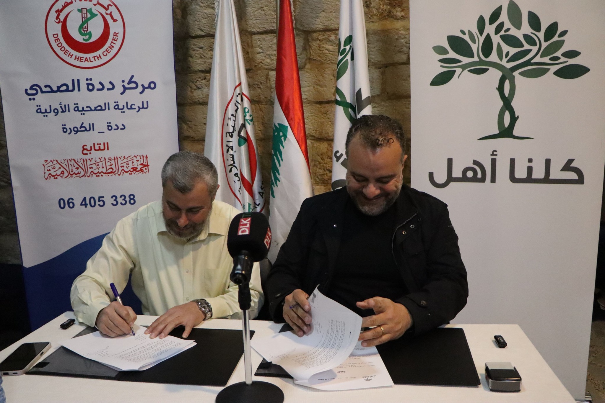 في اطار جهودها لتعزيز الخدمات الصحية في المنطقة، جرى توقيع اتفاقية تعاون بين جمعية "كلنا اهل" ، ممثلة برئيس مجلس إدارتها النائب المهندس أديب عبد المسيح، ومركز الايمان الصحي- دده ، ممثلاً بمدير المركز الشيخ جمال الأيوبي.
